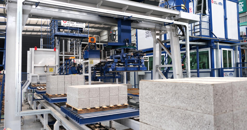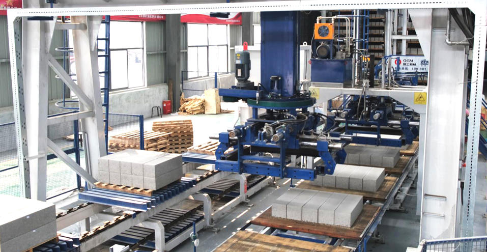 1. D'Automatisatiounsspalt zoumaachen: Ouni e Palletiséierungssystem, manuell Transport a Stacke vu Blocken, déi vun der Zillemaschinn produzéiert ginn, stéiert d'Automatisatioun, schaaft Effizienz Flaschenhals. De Palletiséierungssystem suergt fir en nahtlosen Iwwergank vum fäerdege Brickoutput zum Stacking a Lagerung.